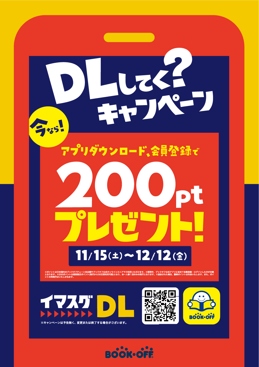 上記開催期間中にBOOOFFのアプリをダウンロード&新規会員登録をしていただくと200ポイントプレゼントしております!
