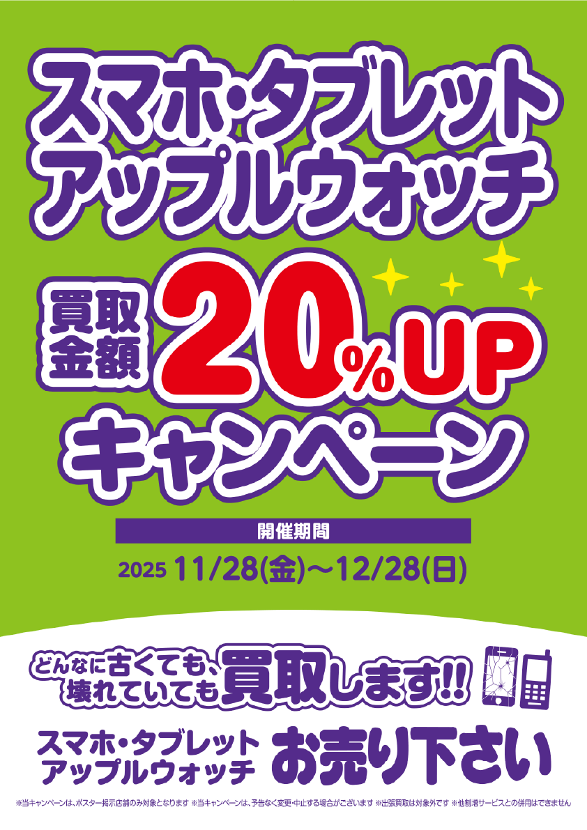 スマホ・タブレット・アップルウォッチ 買取金額20%UPキャンペーン_202511