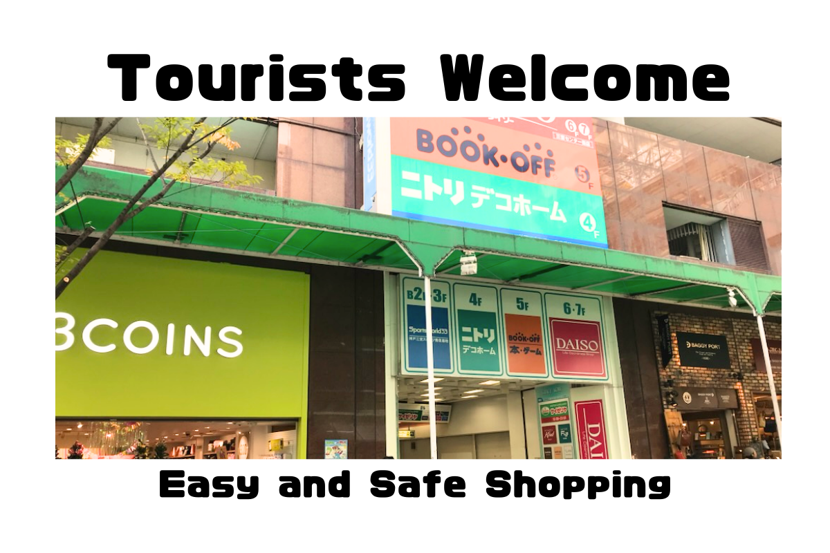 JR元町駅の東口改札を右に出て、信号を渡ると三宮センター街のアーケードが見える。アーケードに入り、そのまままっすぐ進むと、次にセンター街二丁目のアーケードが見える。アーケードに入ると上にブックオフの看板が見える。看板の下を右に入りエレベーターで5Fまでお越しください。
